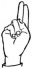 На ћирилици написано НИКОДИЈЕ ЈЕРЕМИЋ састоји се из 15 слова [?]. Исписано ћириличном једноручном азбуком за глувонеме: